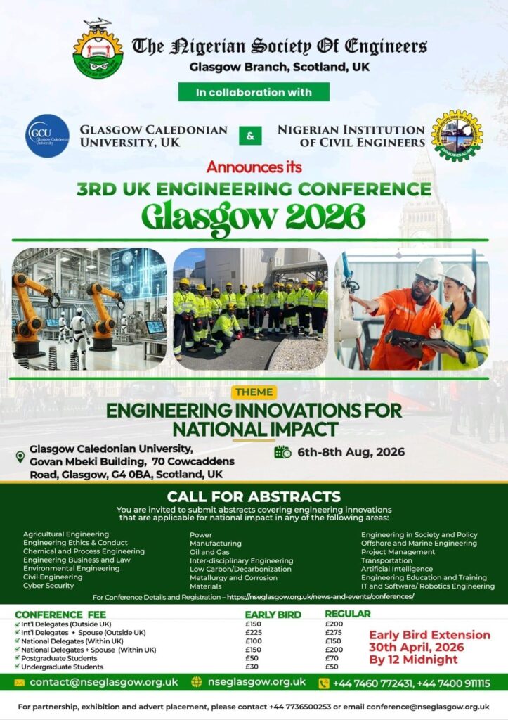 The Nigerian Society of Engineers, Glasgow Branch https://nseglasgow.org.uk Innovation. Engagement. Progress Sat, 18 Apr 2026 22:17:52 +0000 en-GB hourly 1 https://nseglasgow.org.uk/wp-content/uploads/2020/11/cropped-cropped-cropped-cropped-cropped-cropped-Copy-of-black-and-white-barber-logo-design-template-Made-with-PosterMyWall-1-1-1-1-32x32.png The Nigerian Society of Engineers, Glasgow Branch https://nseglasgow.org.uk 32 32 Engineering Convention 2026 https://nseglasgow.org.uk/engineering-convention-2026/ Sun, 26 Oct 2025 18:49:02 +0000 https://nseglasgow.org.uk/?p=5896